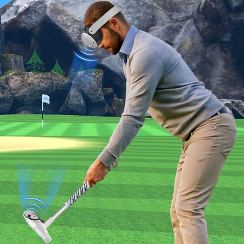 VRゴルフゲームの臨場感を高めるクラブ型のハンドルです。長さは本物より短いため、ある程度の広さがあればフルスイングできます。